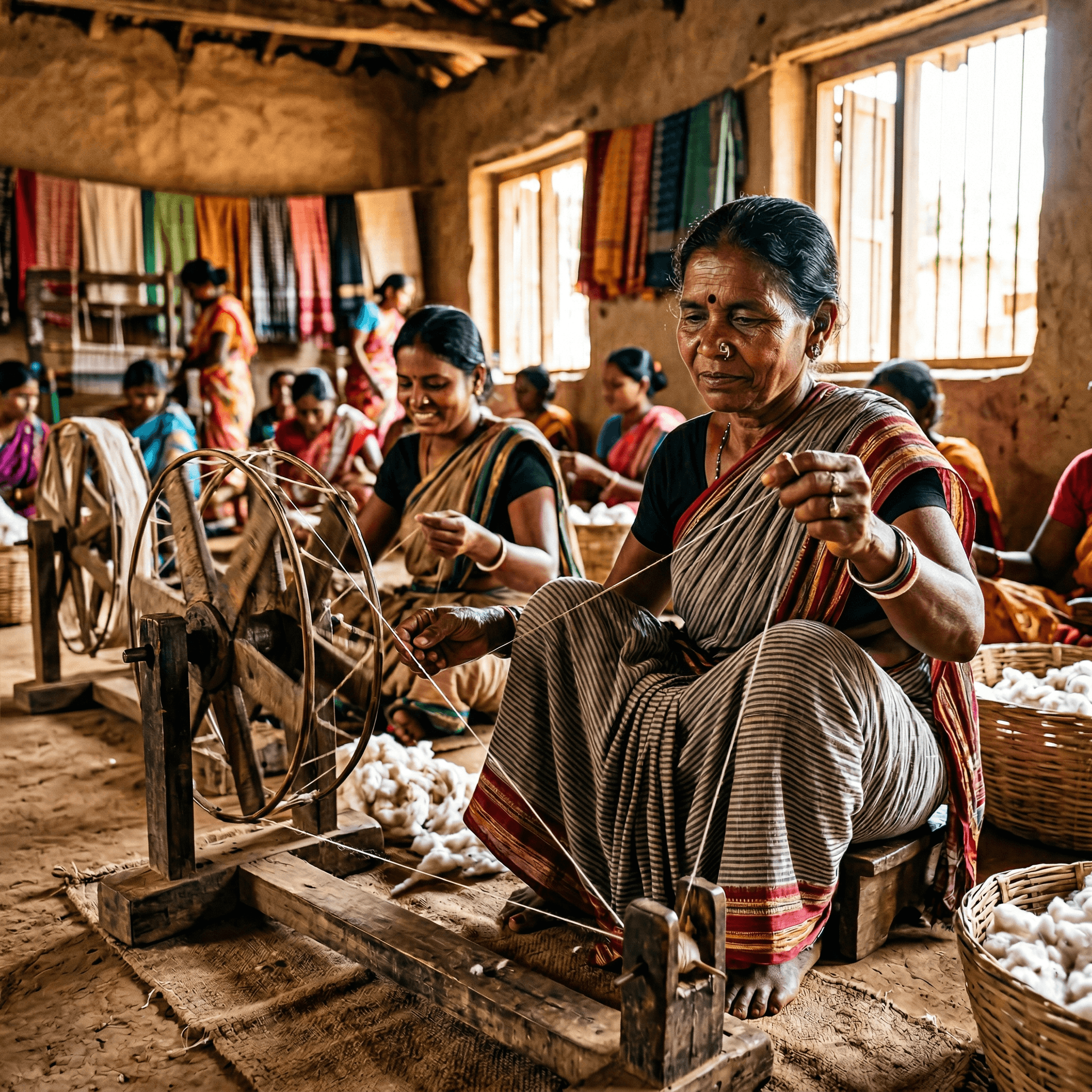 This initiative revitalizes the spinning wheel as a strategic tool for the social and economic transformation of rural women and youth by training them in advanced weaving techniques and establishing decentralized production centers. By promoting ethical, hand-spun fashion to foster local entrepreneurship, the project has created financial independence for women and established a sustainable, carbon-neutral textile value chain.